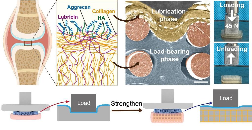 Inspired by the excellent mechanical properties and the remarkable surface lubrication mechanism of natural articular cartilages, the researchers from the Lanzhou Institute of Chemical Physics, Chinese Academy of Sciences, developed the lubricated bi-layered composite, exhibiting excellent mechanical tolerance and unique stress dissipation mechanism.
