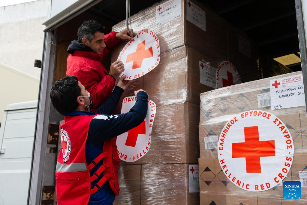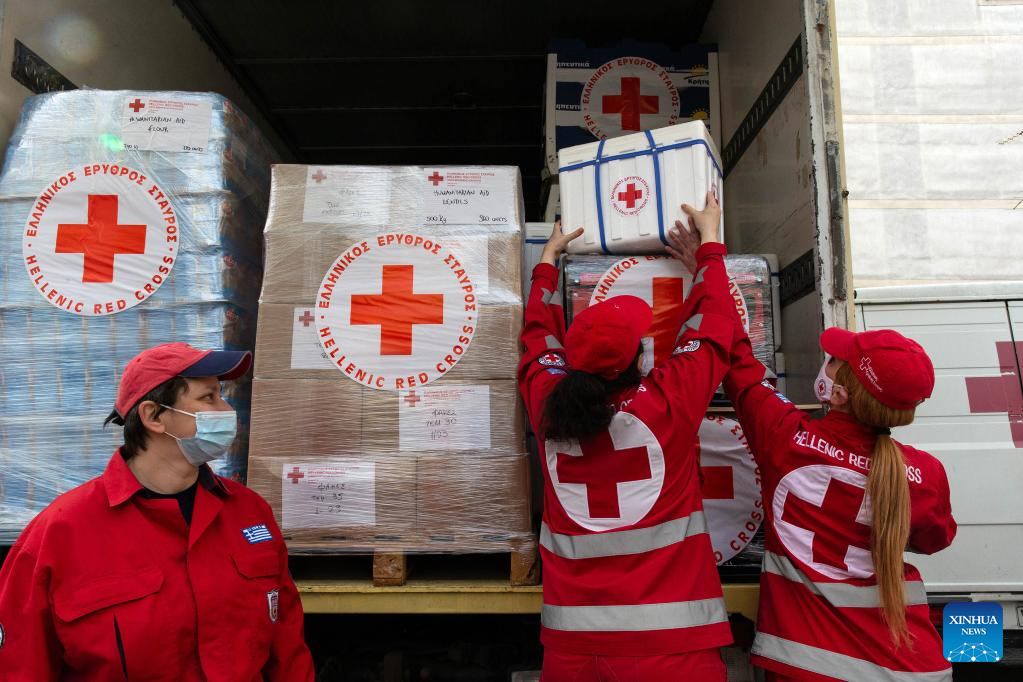 The Hellenic Red Cross sent 50 tons of humanitarian aid to Ukraine on Tuesday. (Xinhua/Marios Lolos)