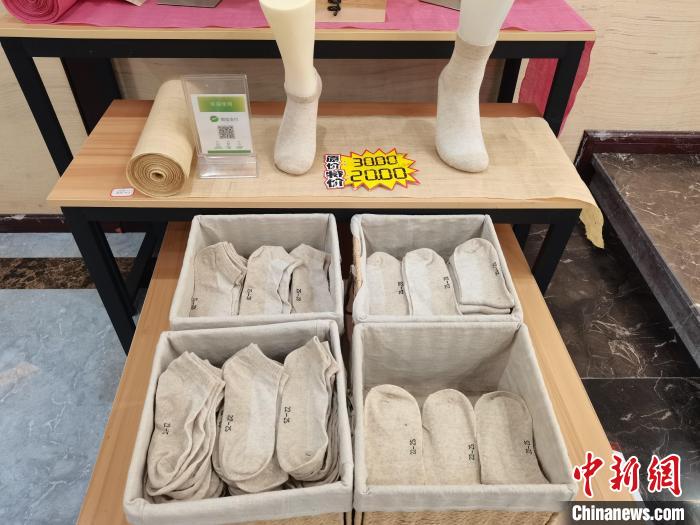 Photo shows socks made from Xiabu cloth materials. (Photo/Zhang Xu)