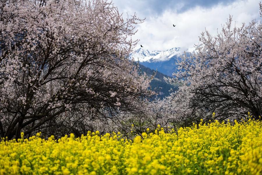 Drone photo shows picturesque view of peach blossoms in Nyingchi, southwest China's Tibet Autonomous Region, March 30, 2022. (Photo/China News Service)