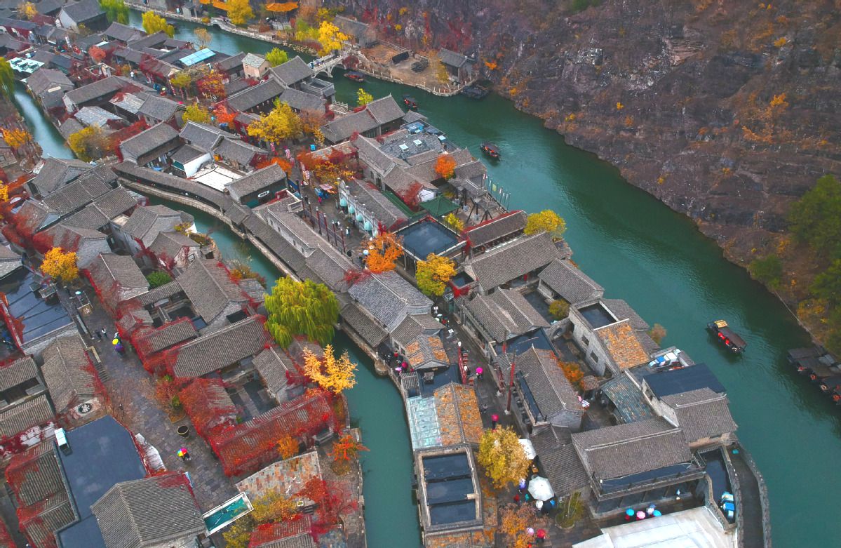 An aerial image of Gubei Water Town, a well-known site for rural tourism, in Beijing's Miyun district. HOU YU/CHINA NEWS SERVICE