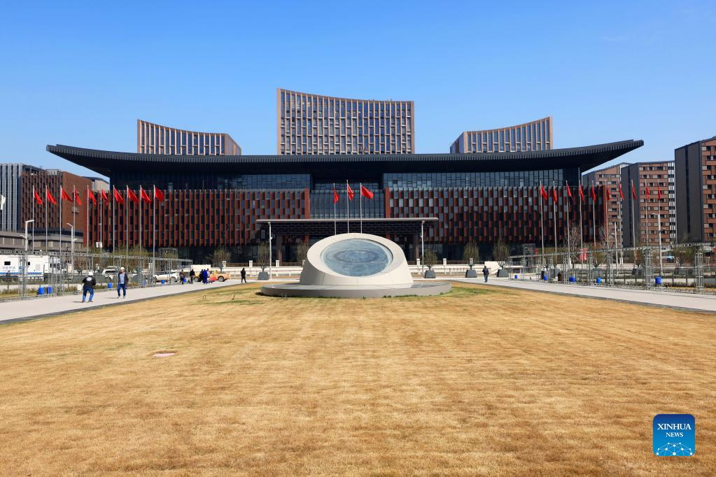 Photo taken on March 31, 2022 shows the business service center in Xiong'an New Area, north China's Hebei Province. (Xinhua/Xing Guangli)