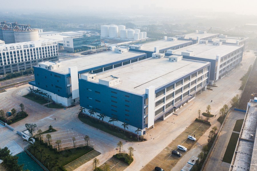 Aerial photo taken on Jan. 2, 2022 shows a factory building and overseas warehouse project at the Yangpu Bonded Port Area in the Yangpu Economic Development Zone, south China's Hainan Province. (Xinhua/Pu Xiaoxu)