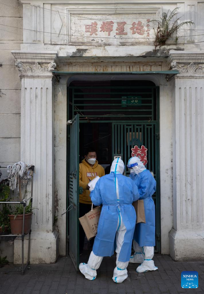Shanghai launched citywide antigen testing on Sunday and will conduct nucleic acid testing on Monday amid efforts to contain the recent resurgence of COVID-19 cases in the metropolis, according to local authorities. (Xinhua/Jin Liwang)