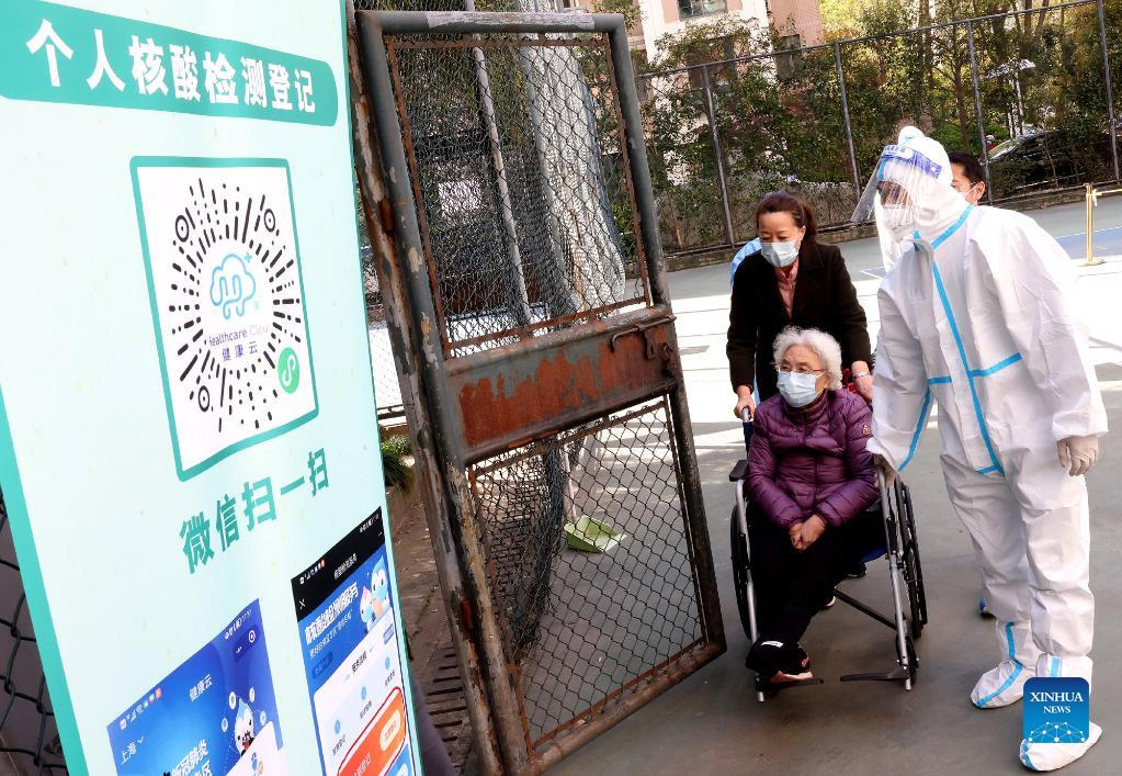 Residents prepare to take nucleic acid tests at a community in Putuo District of Shanghai, east China, April 4, 2022. Amid rising numbers of COVID-19 infections in its latest resurgence, Shanghai on Monday launched a citywide nucleic acid testing campaign covering the city's more than 24 million residents. (Xinhua/Chen Fei)