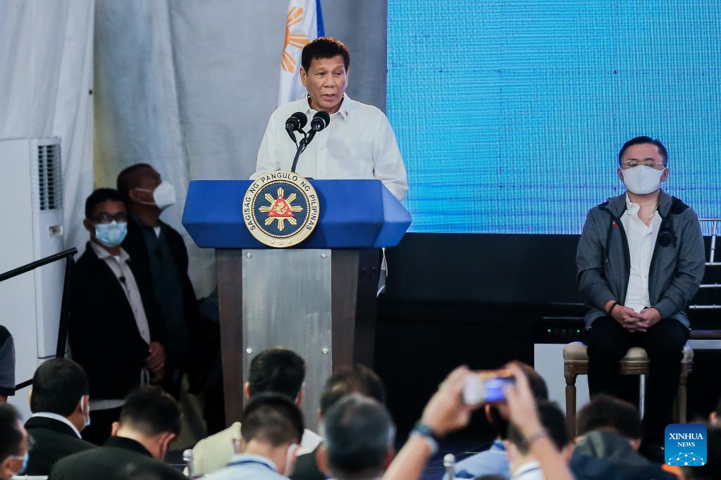 Philippine President Rodrigo Duterte speaks during the unveiling of the China-gifted Binondo-Intramuros Bridge in Manila, the Philippines on April 5, 2022. (Xinhua/Rouelle Umali)