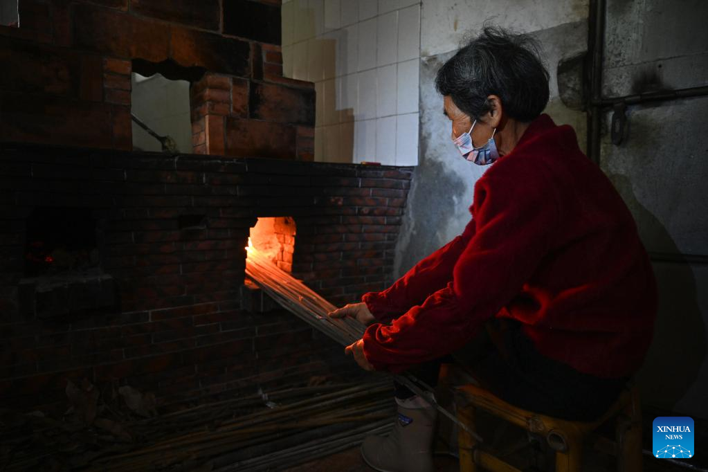 A volunteer granny makes cooking fire at Xinbu Community in Quanzhou, southeast China's Fujian Province, April 5, 2022.