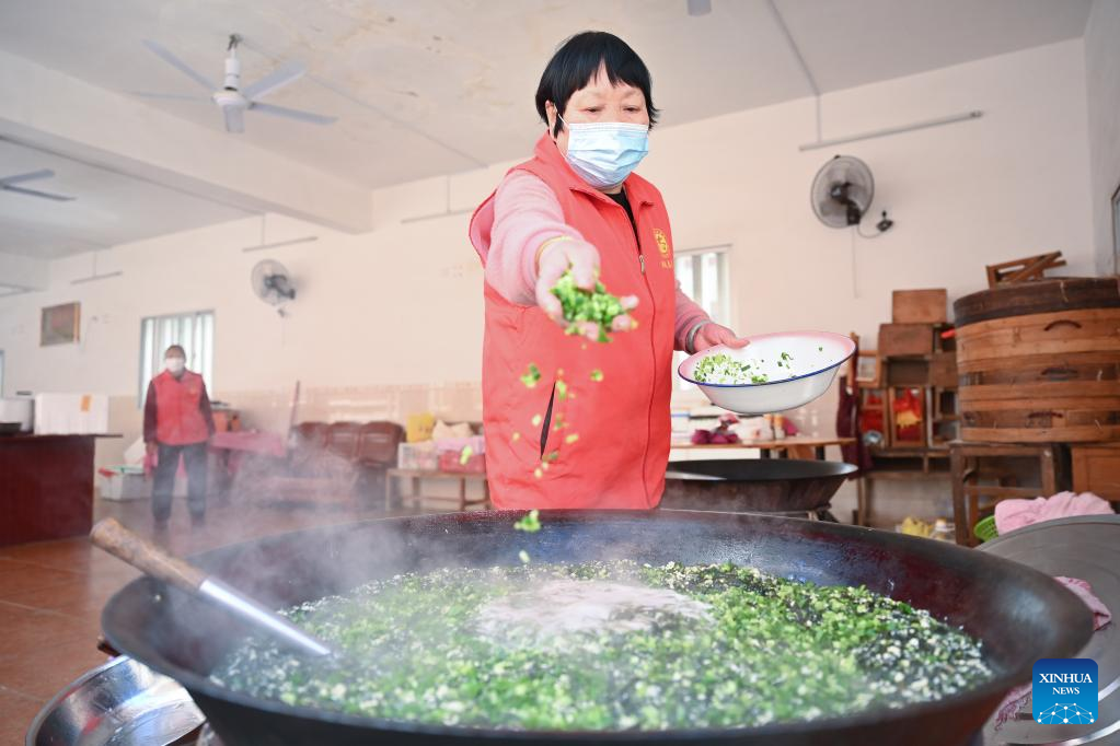 Volunteer grannies cook at Xinbu Community in Quanzhou, southeast China's Fujian Province, April 5, 2022.
