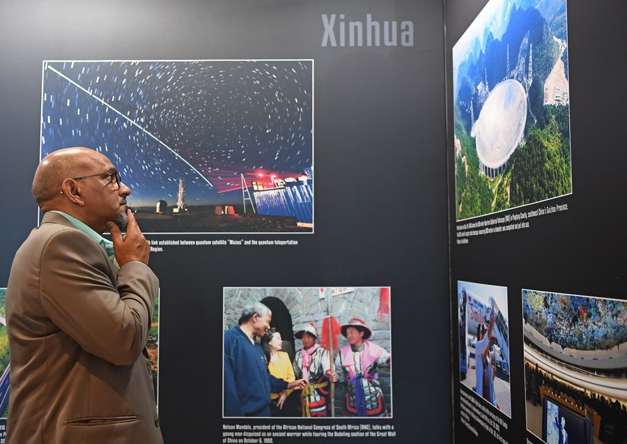 File photo shows a media delegate viewing photos at the second edition of BRICS Media Joint Photo Exhibition in Cape Town, South Africa, July 18, 2018. (Xinhua/Chen Cheng)