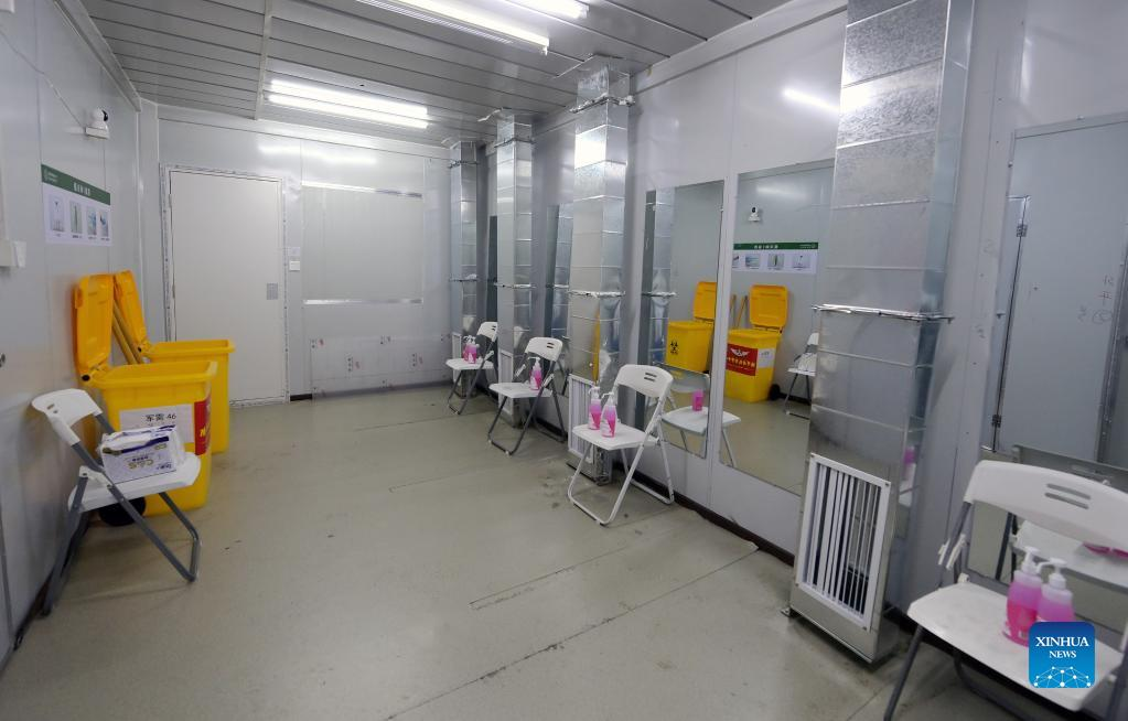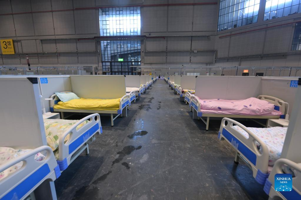 Photo taken on April 9, 2022 shows the interior view of a makeshift hospital converted from the National Exhibition and Convention Center (Shanghai) in east China's Shanghai. (Xinhua/Li He)