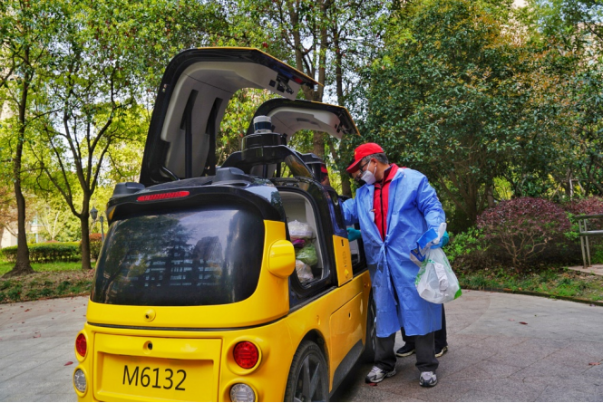 The intelligent vehicles provide significant extra help for the community with over 5,000 households and reduces the distribution pressure of the volunteers, according to Huo Jianqiang, Party secretary of the community.