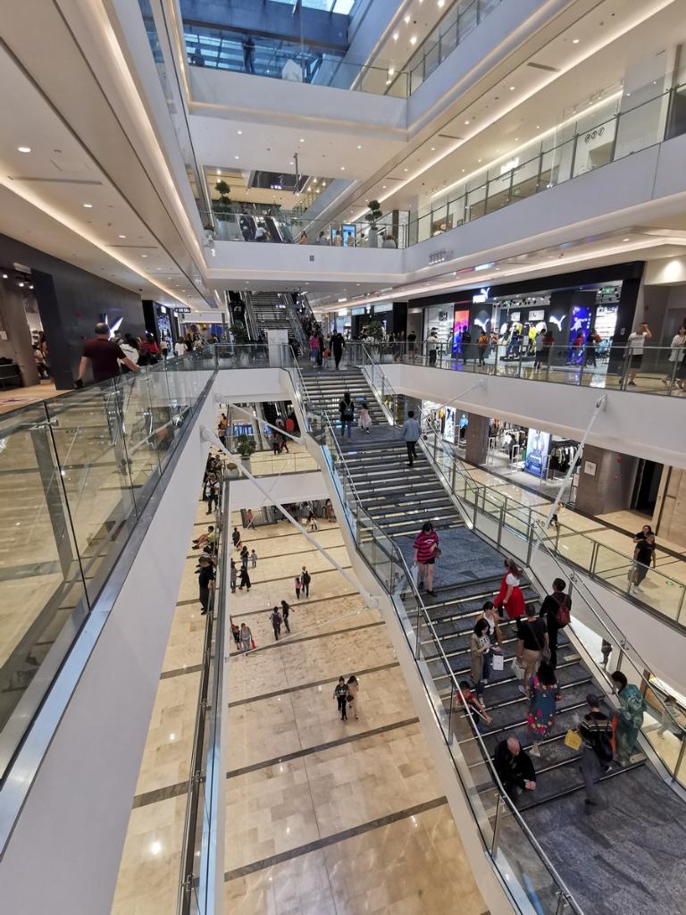 File photo taken on Oct. 4, 2019 shows an interior view of the Raffles shopping mall, a China-Singapore cooperative project, in southwest China's Chongqing Municipality. (Xinhua/Liu Chan)
