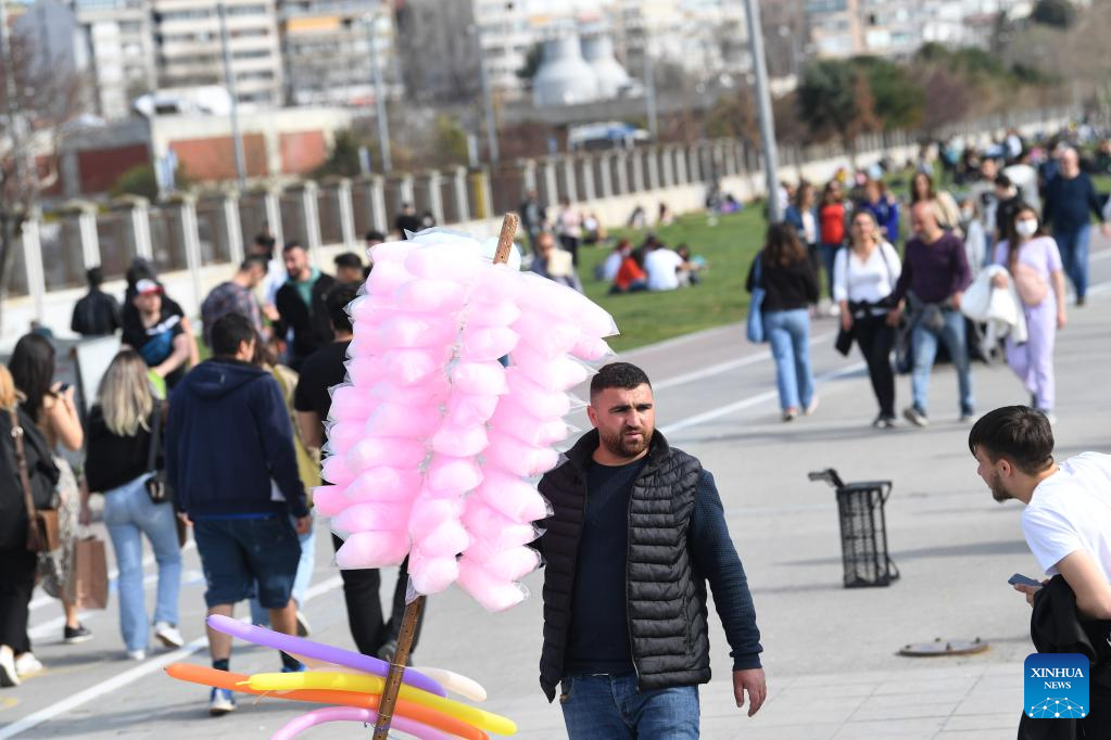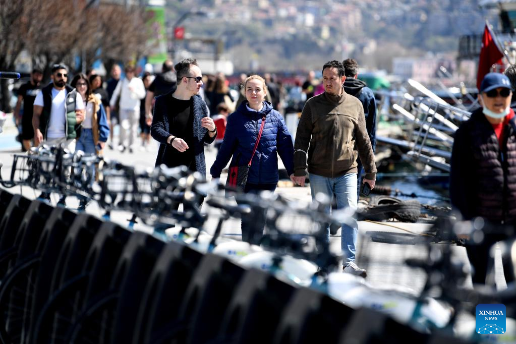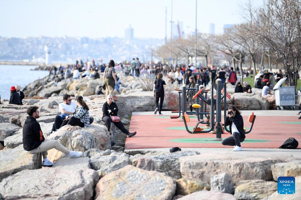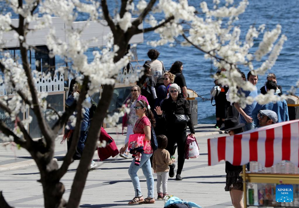 People enjoy the springtime in Istanbul, Turkey, April 10, 2022. (Xinhua/Shadati)
