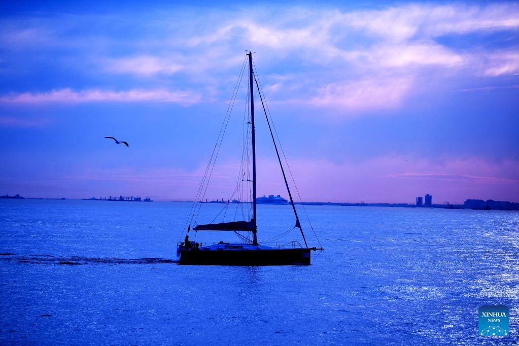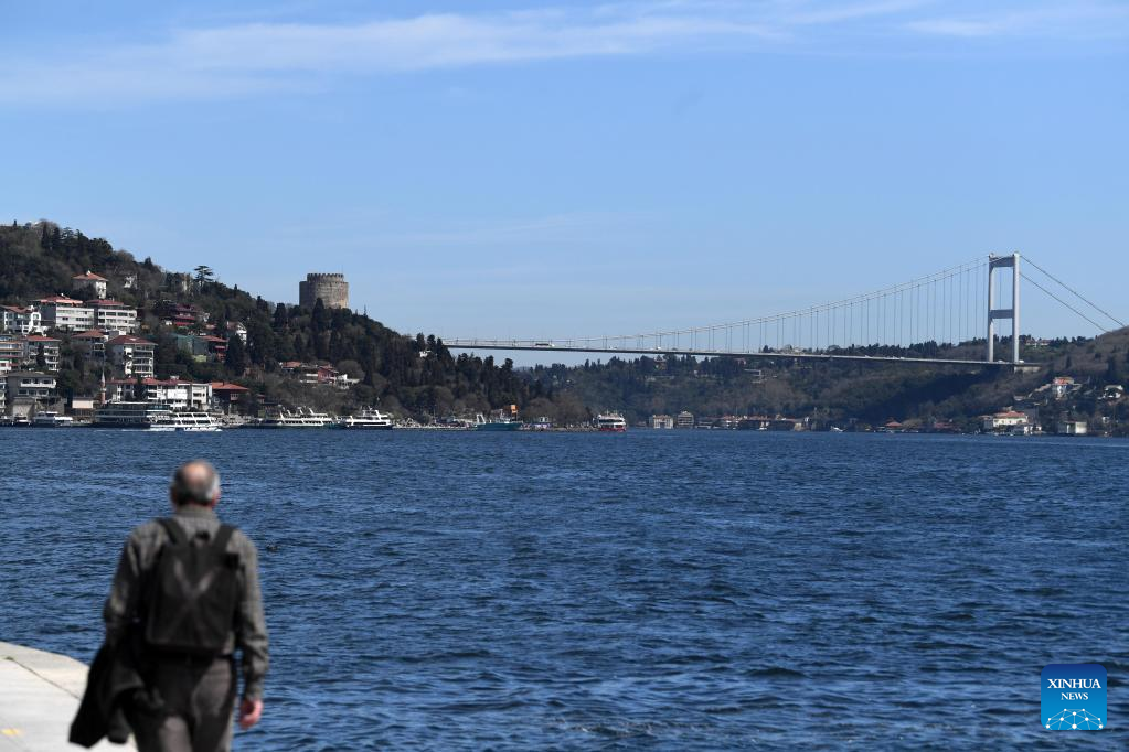 Photo taken on April 10, 2022 shows the scenery of the Bosporus Strait in Istanbul, Turkey. (Xinhua/Shadati)
