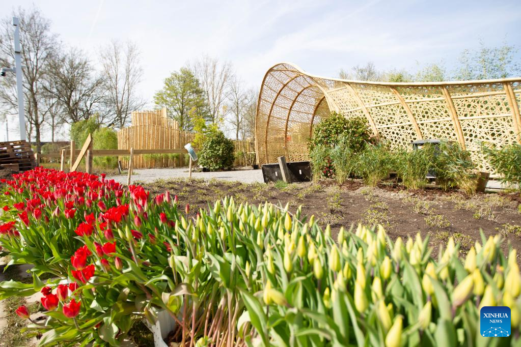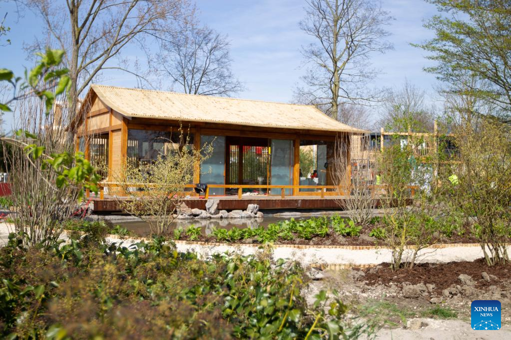 Photo taken on April 11, 2022 during a press preview shows China's Pavilion at Floriade Expo 2022 in Almere, the Netherlands. Floriade Expo 2022, a world horticultural exhibition, is set to be held in Almere from April 14 to Oct. 9. (Photo by Sylvia Lederer/Xinhua)