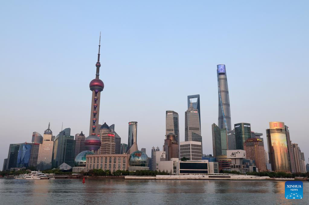 Photo taken on April 11, 2022 shows a view of Pudong New Area in east China's Shanghai. Shanghai has divided the whole city into areas belonging to three categories as part of targeted efforts to overcome a local COVID-19 resurgence. (Xinhua/Chen Jianli)