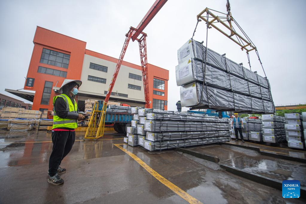 The port is one of the important logistics hubs in the city. The staff of the highway port, the workers of the logistics companies and the truck drivers have been working hard to facilitate supplies for households and industries amid COVID-19 flare-ups in certain parts of the country. (Xinhua/Jiang Han)