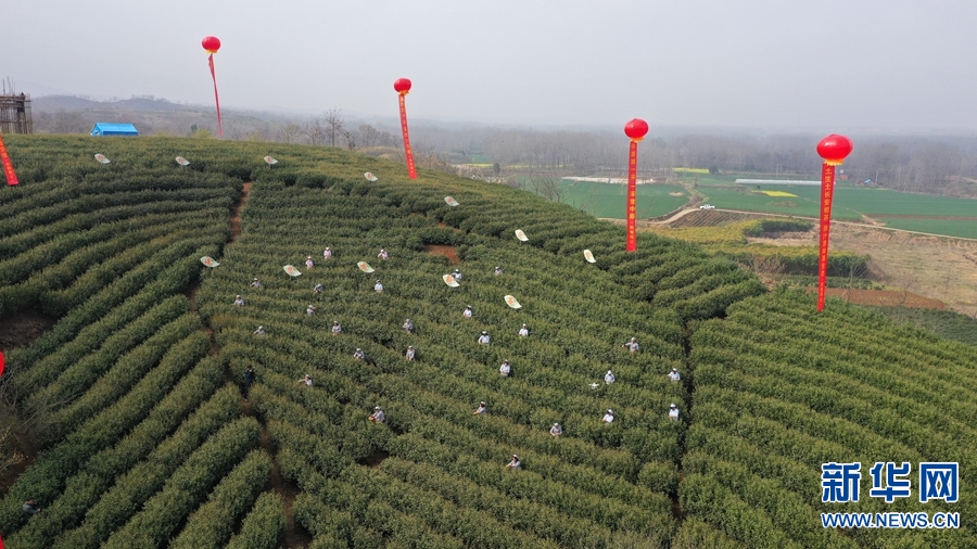 Farmers pick tea leaves at a tea plantation in Tongbai county, central China’s Henan Province. (Photo/Xinhua)