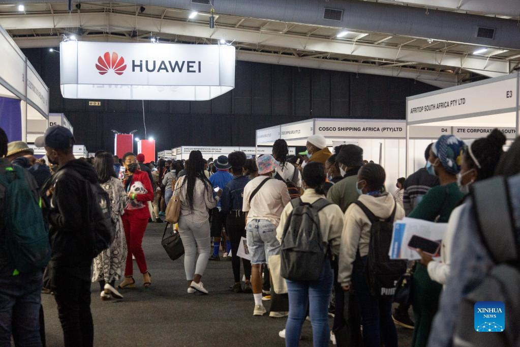 People visit a job fair of Chinese-invested enterprises in Johannesburg, South Africa, on April 14, 2022. Thousands of job seekers on Thursday swarmed into the Gallagher Convention Center in Johannesburg, where Chinese-invested enterprises in South Africa threw a job fair in hopes of hiring local talent for localized development. (Photo by Yeshiel Panchi/Xinhua)