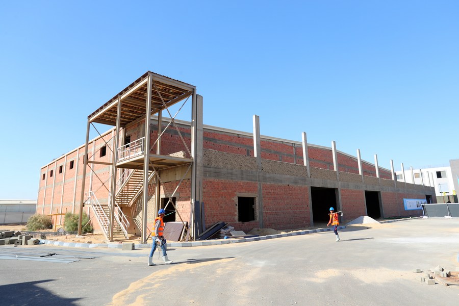 Photo taken on April 14, 2022 shows a building under construction, which is donated by China to Egypt for vaccine storage, in Giza, Egypt. (Xinhua/Sui Xiankai)