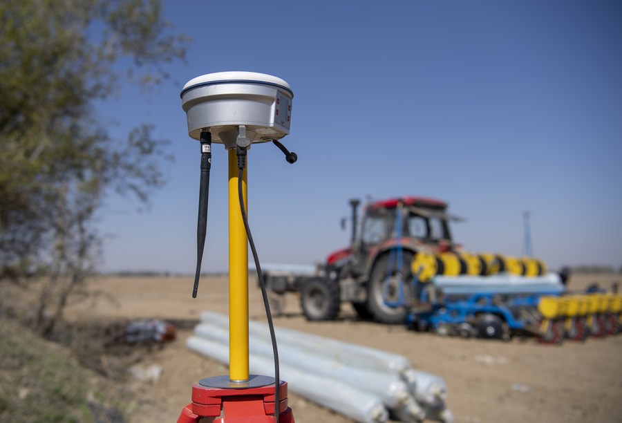 Abdugani Abdukeyum, a Uygur farmer in Bachu County, Kashgar Prefecture, said, "We use a seeding machine guided by the BeiDou Navigation Satellite System to sow, which works precisely and efficiently."