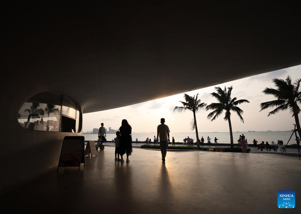 Photo taken on April 16, 2022 shows the Wormhole Library in the Haikou Bay in Haikou, south China's Hainan Province. (Xinhua/Zhang Liyun)
