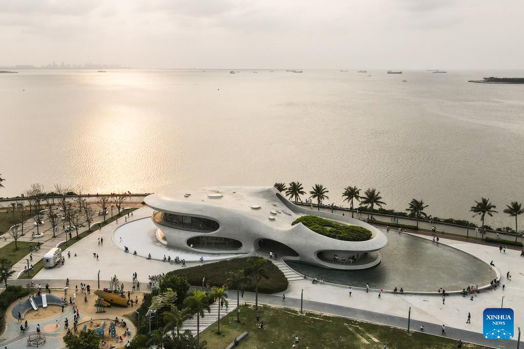 Photo taken on April 12, 2021 shows the Wormhole Library in the Haikou Bay in Haikou, south China's Hainan Province. (Xinhua/Zhang Liyun)