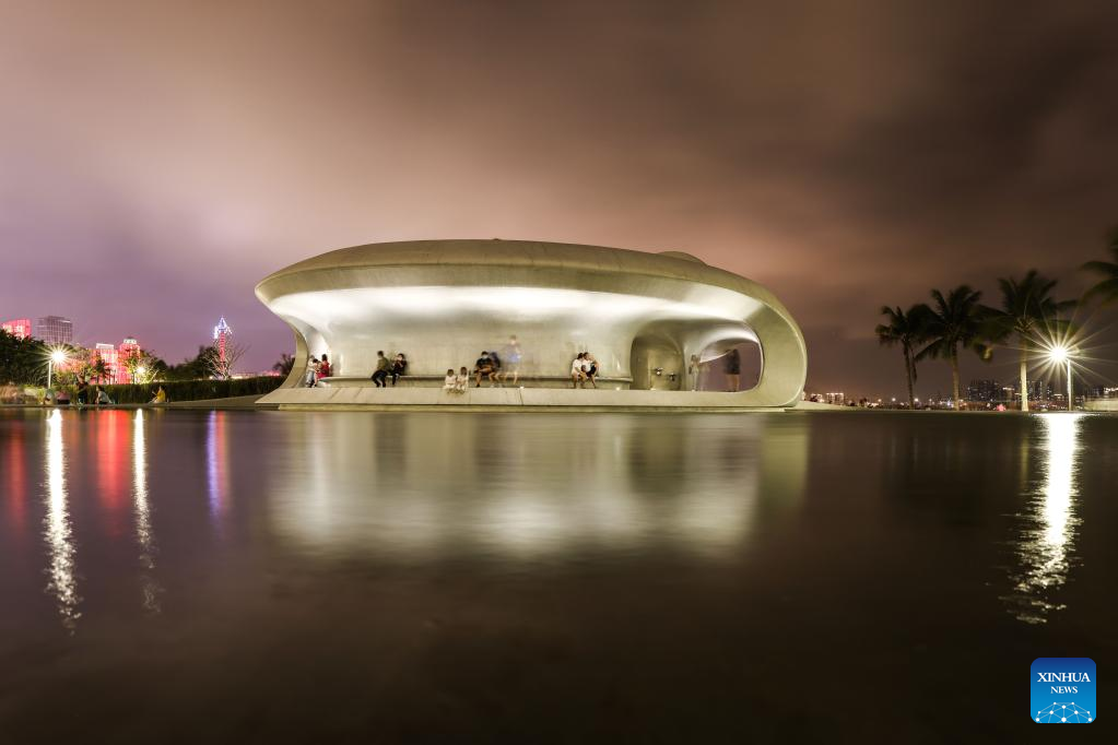 Photo taken on April 15, 2022 shows the Wormhole Library in the Haikou Bay in Haikou, south China's Hainan Province. (Xinhua/Zhang Liyun)