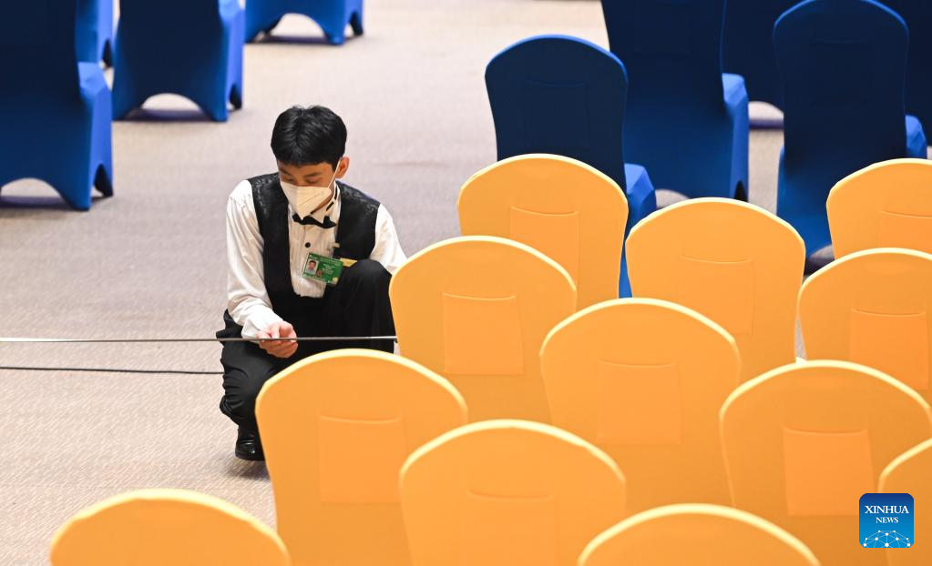 A staff member works at the venue of the Boao Forum for Asia in Boao, south China's Hainan Province, April 18, 2022. The Boao Forum for Asia (BFA) will hold its annual conference from April 20 to 22 in Boao, a coastal town in China's southernmost province of Hainan. (Xinhua/Yang Guanyu)