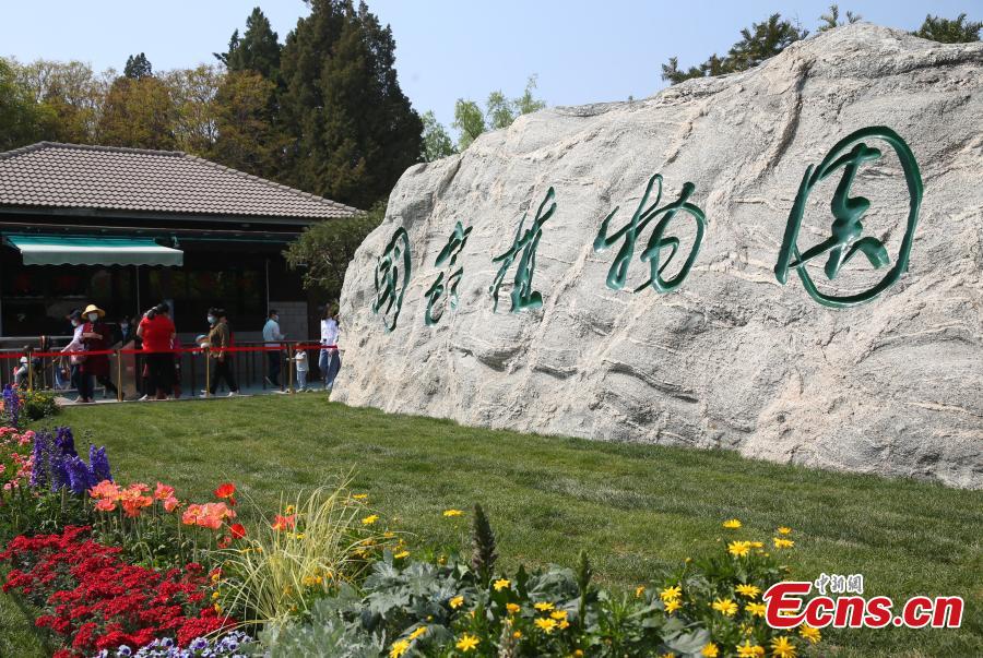 People queue to enter the China National Botanical Garden in Beijing, capital of China, April 18, 2022. The China National Botanical Garden was officially inaugurated in Beijing on Monday. (Photo: China News Serivce/Yi Haifei)