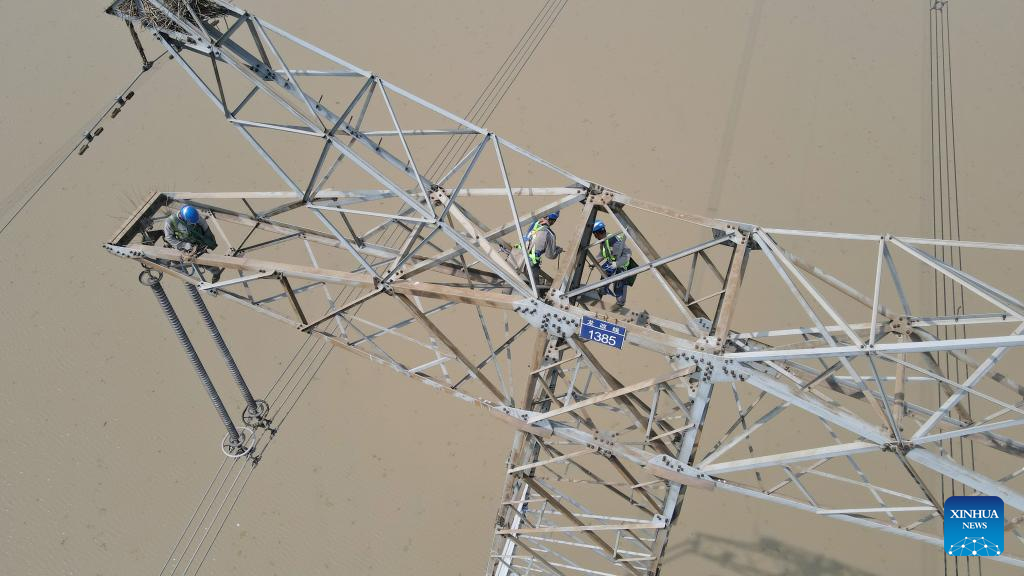 In pics: maintenance work of power transmission project in Lujiang, east China (6)