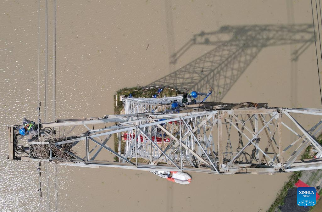 In pics: maintenance work of power transmission project in Lujiang, east China (8)