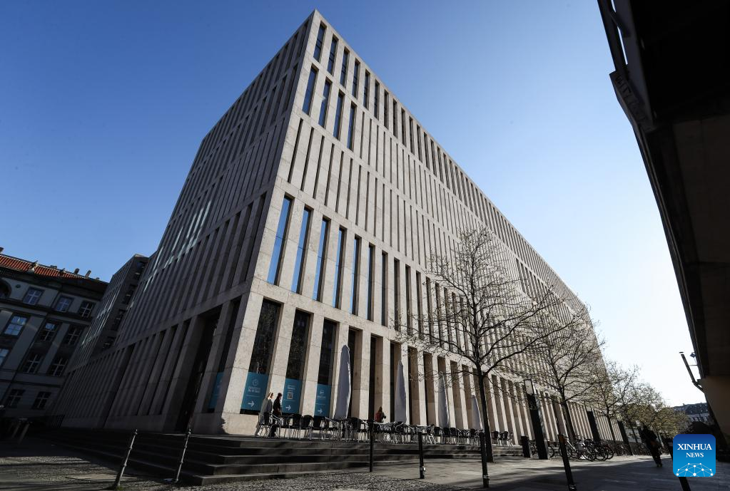 Photo taken on April 19, 2022 shows a view of the Jacob and Wilhelm Grimm Center in Berlin, capital of Germany.