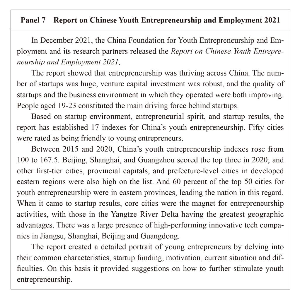 China has introduced a raft of policies supporting business startups, and young people are responding warmly. They are active in entrepreneurship programs like the China College Students' Entrepreneurship Competition, China International "Internet+" College Students Innovation and Entrepreneurship Competition, carving out careers with their knowledge and ingenuity. Among the founders of market entities registered since 2014, more than 5 million are college students and new graduates. In creative industries such as IT services, culture, sports, entertainment and sci-tech, young people account for half or more of the workforce, and are at the helm of many unicorn and gazelle companies. Aligning individual inclination with national development, young people are putting their talents to use in innovation and starting businesses, and serving society in the process.