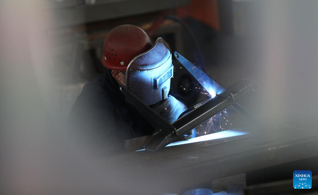 A worker operates at an automobile parts factory in Anshan City, northeast China's Liaoning Province, April 19, 2022. Anshan City in Liaoning is in an orderly work resumption with strict epidemic prevention measures in place. (Xinhua/Yao Jianfeng)