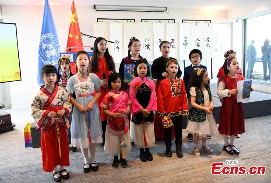 Children from different countries perform Chinese songs to celebrate the 2022 United Nations Chinese Language Day at the headquarters of UNESCO, Paris, France, April 20, 2022. (Photo: China News Service/Li Yang)