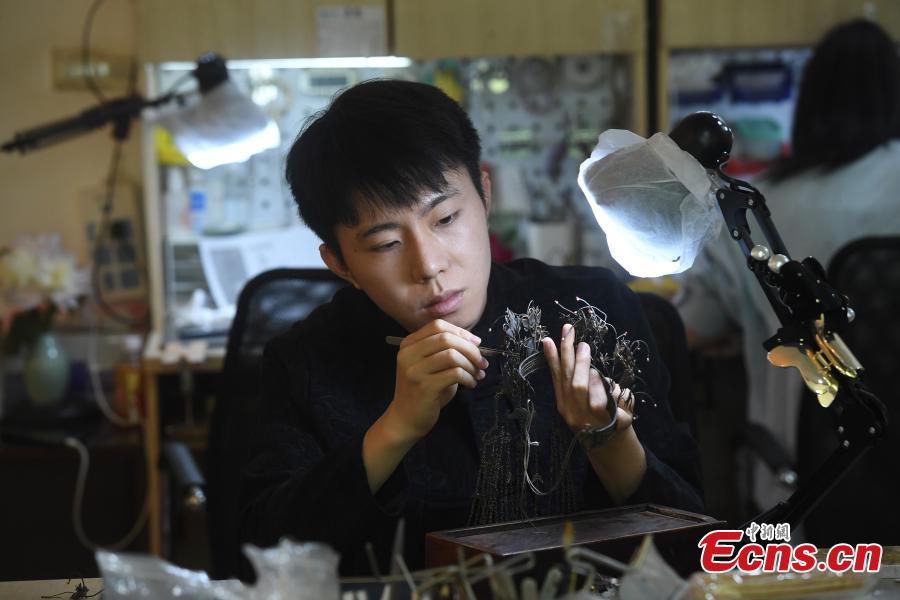 Young man creates fine filigree inlay ornaments in Chongqing (8)