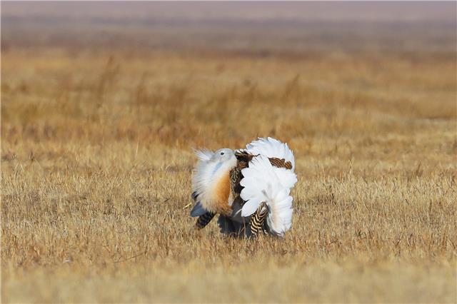 Endangered great bustards make spring journey back to nature reserve in N China's Inner Mongolia (4)