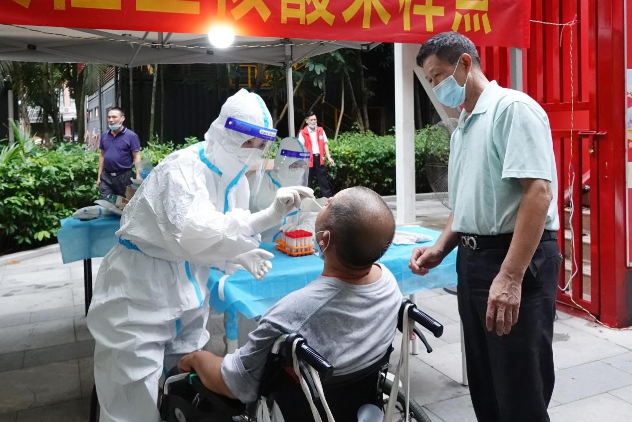 People take part in a citywide nucleic acid testing in Haibin community, Futian subdistrict, Futian district, Shenzhen city, south China’s Guangdong province, June 8, 2021. (Photo by Hu Zhihui/People’s Daily Online)