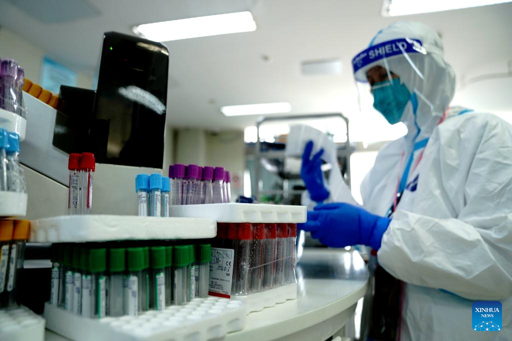 A medical worker works at the emergency room of Minhang Hospital affiliated to Fudan University in East China's Shanghai, April 20, 2022. [Photo/Xinhua]