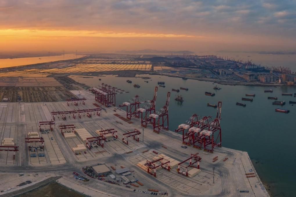 Photo taken on Dec. 7, 2021 shows the fourth-phase project of the Port of Nansha under the Guangdong Port Group, the first fully automated terminal in the Greater Bay Area. (People's Daily Online/Qiu Xinsheng)