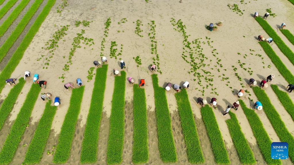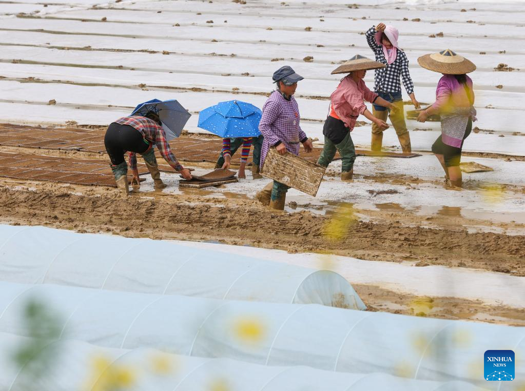 Villagers work in a field in Taihe Town of Dongpo District in Meishan, southwest China's Sichuan Province, April 24, 2022. (Photo by Zhang Zhongping/Xinhua)