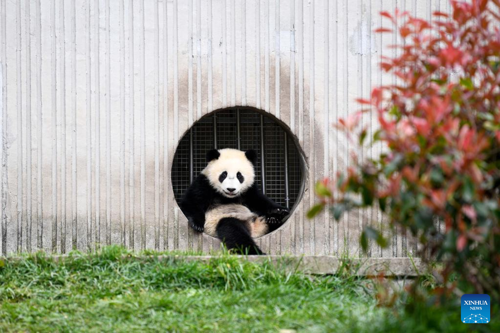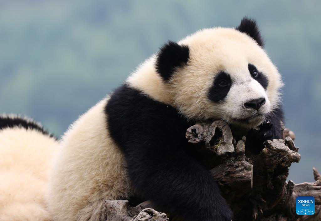 A giant panda is seen at Shenshuping base of China Conservation and Research Center for Giant Pandas in Wolong National Nature Reserve, southwest China's Sichuan Province, April 24, 2022. (Xinhua/Xu Bingjie)