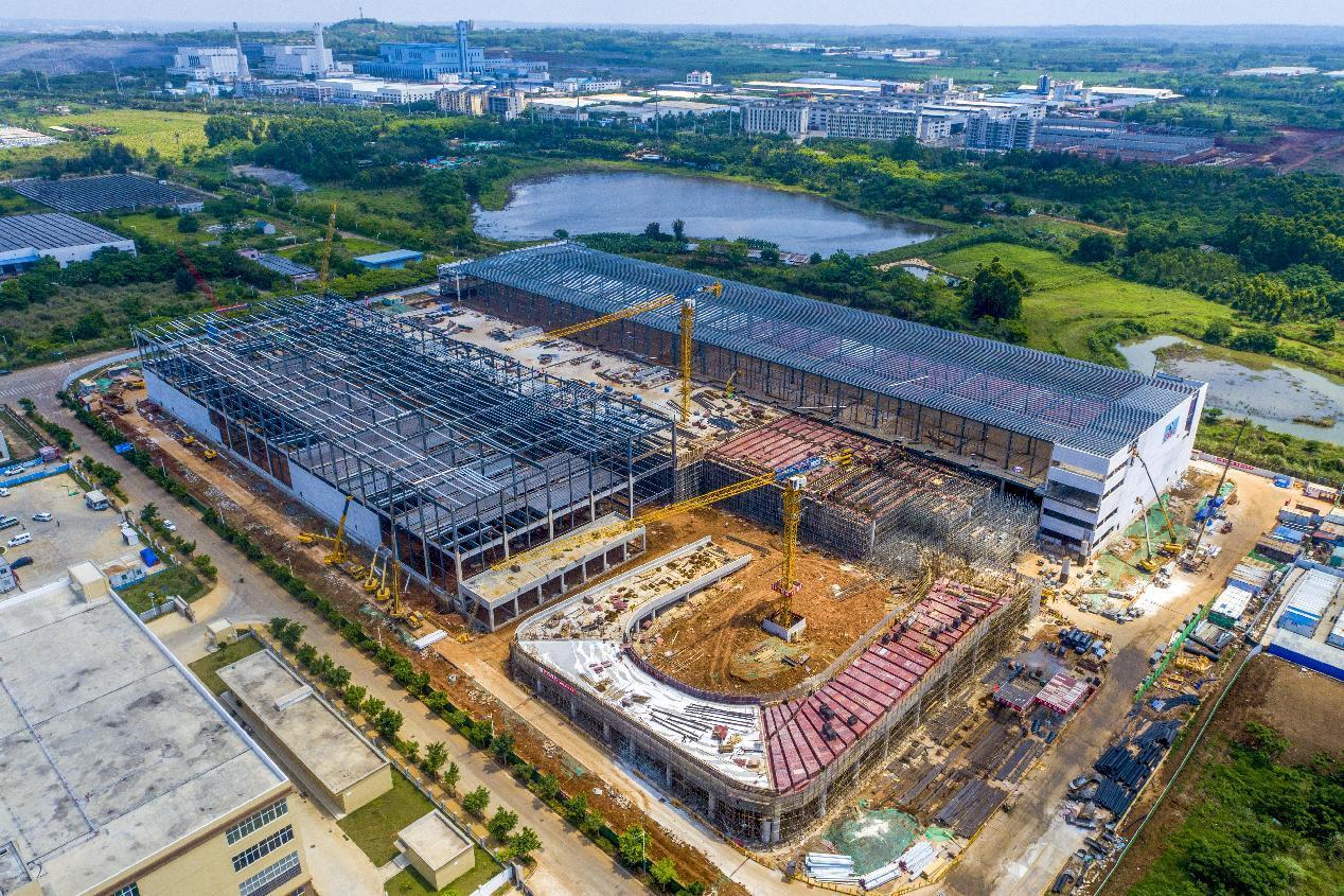 Photo taken on April 9, 2022 shows a bird’s eye view of the construction site of the public bonded warehouse for duty-free everyday commodities in Haikou Comprehensive Bonded Zone. The steel structure construction of the project in Haikou city, capital of south China’s Hainan province, has been completed. (People’s Daily Online/Shi Zhonghua)