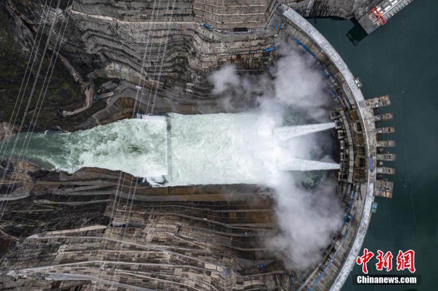 Aerial photo taken on April 25, 2022 shows the view of the Baihetan hydropower station in southwest China. (Photo: China News Service/Zhao Jian)