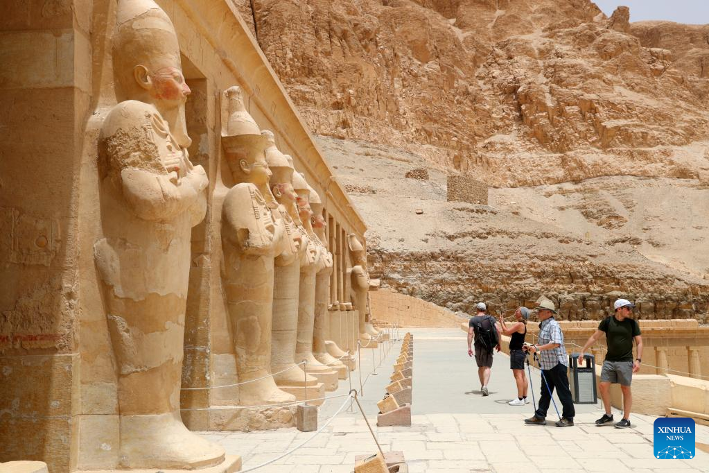 Tourists visit the Temple of Hatshepsut in Luxor, Egypt, April 26, 2022.