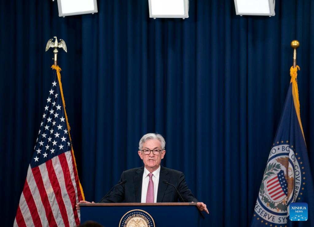 U.S. Federal Reserve Chair Jerome Powell attends a press conference in Washington, D.C., the United States, on May 4, 2022. The U.S. Federal Reserve on Wednesday raised its benchmark interest rate by a half percentage point, marking the sharpest rate hike since 2000, as it takes more aggressive steps to rein in the highest inflation in four decades. (Xinhua/Liu Jie)