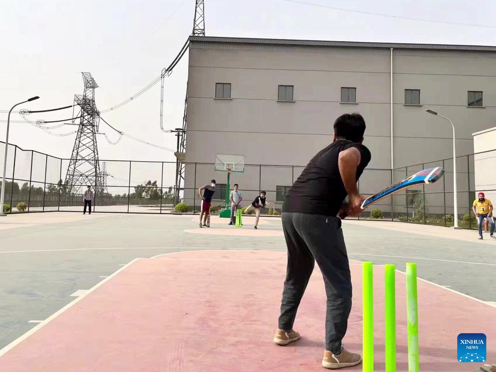 Chinese and Pakistani employees of China-Pakistan Economic Corridor (CPEC)'s Matiari-Lahore transmission line project play cricket during Eid al-Fitr in Lahore, Pakistan, on May 3, 2022. The multibillion-U.S. dollar China-Pakistan Economic Corridor (CPEC), a mega project that can help Pakistan overcome its socio-economic challenges, has helped sow the seeds of love among young Pakistanis. (Str/Xinhua)