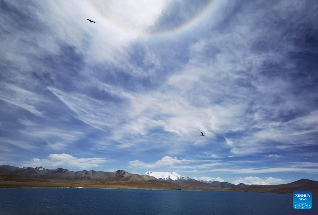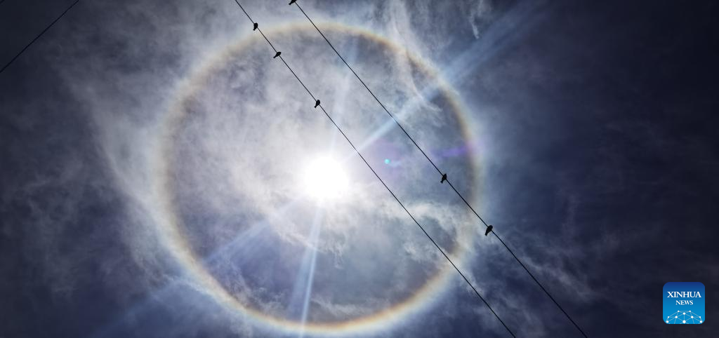 Cellphone photo taken on May 1, 2022 shows a solar halo over Tuiwa Village in Nagarze County in Shannan, southwest China's Tibet Autonomous Region.