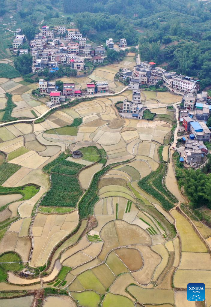Aerial photo taken on May 6, 2022 shows paddy fields in Donglan County of south China's Guangxi Zhuang Autonomous Region. (Xinhua/Lu Boan)